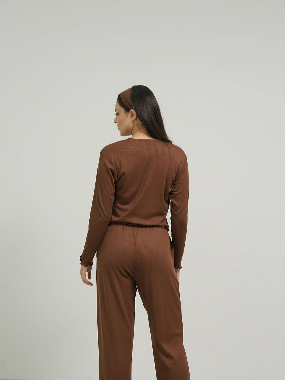 Este set incluye tres piezas esenciales para tu descanso o rutina diaria: cardigan, blusa de tiritas y pantalón.